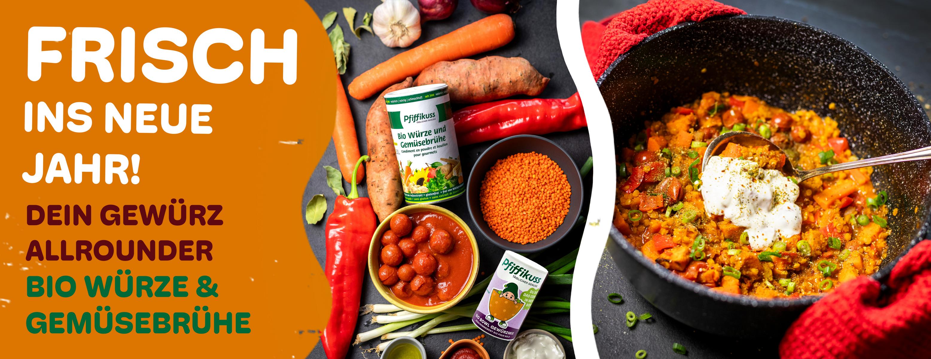 Unser Bestseller: Die Pfiffikuss Streuwürze ,unsere Bio Gemüsebrühe, haben wir selbst entwickelt – ohne Hefeextrakt, Geschmacksverstärker und Rieselhilfen und Zuckerzusatz. Auch alle weiteren Gewürzmischungen sind in unserer Versuchsküche entwickelt und werden in unserer Manufaktur auf der Insel gemischt und abgefüllt. Getrocknete Kräuter und Gemüse und Salz sind die Hauptbestandteile unserer Gewürzmischungen. Kristallzucker ersetzen wir durch Apfelmehl. Zahlreiche Rezeptideen und Videos finden Sie auf unserer Internetseite und in den Social Media Kanälen.. Diese natürlichen Produkte bieten eine hohe Gemüsequalität und unverfälschten Geschmack und neben unserem beliebten Klassiker, Streuwürze und Gemüsebrühe, bieten wir auch:
