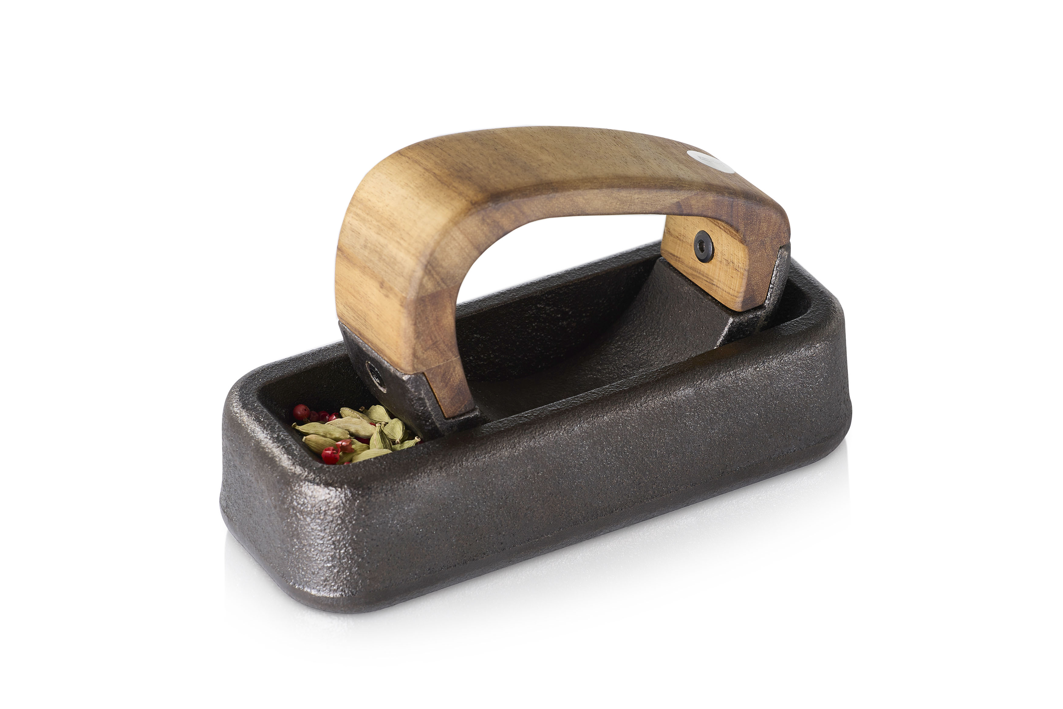 Hochwertiger Wiegemörser aus Gusseisen und Akazienholz